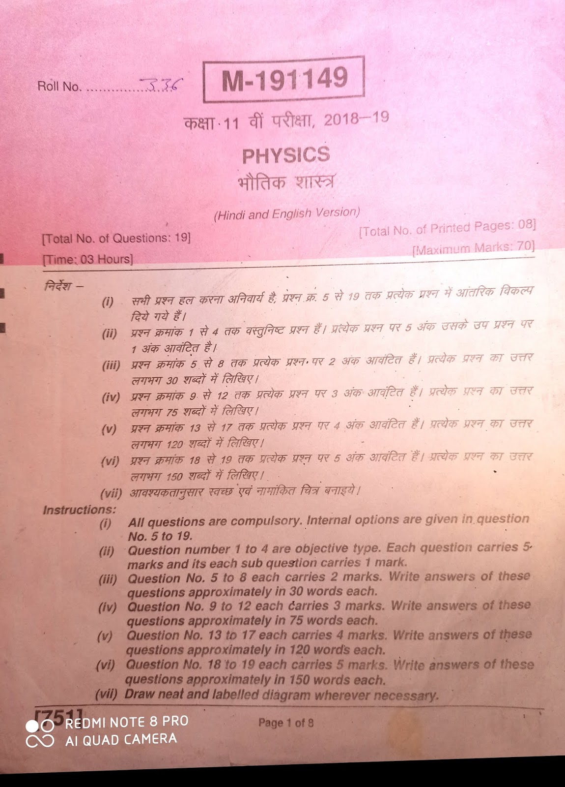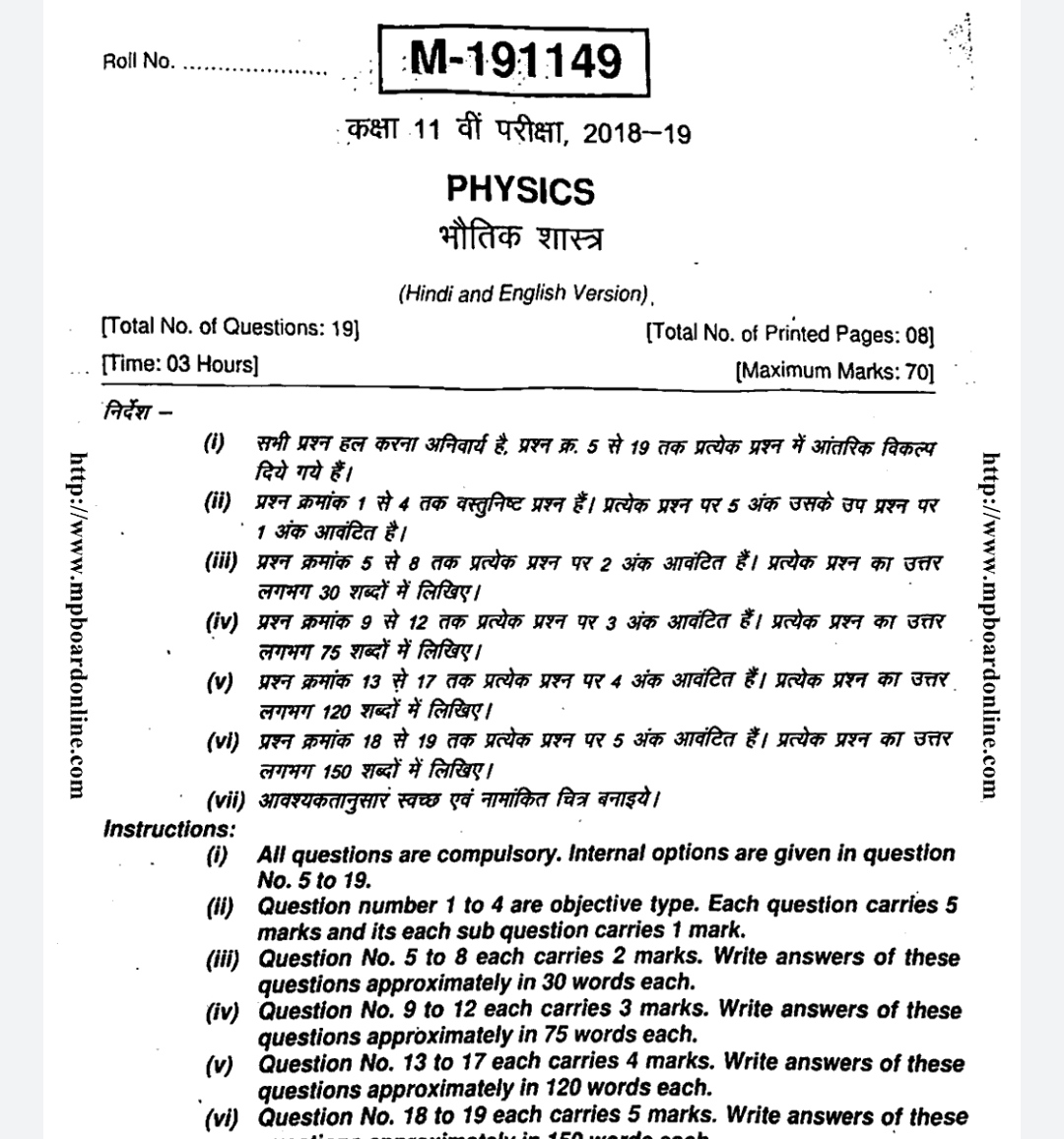 11th Class Physics Paper 2018 Rbse
